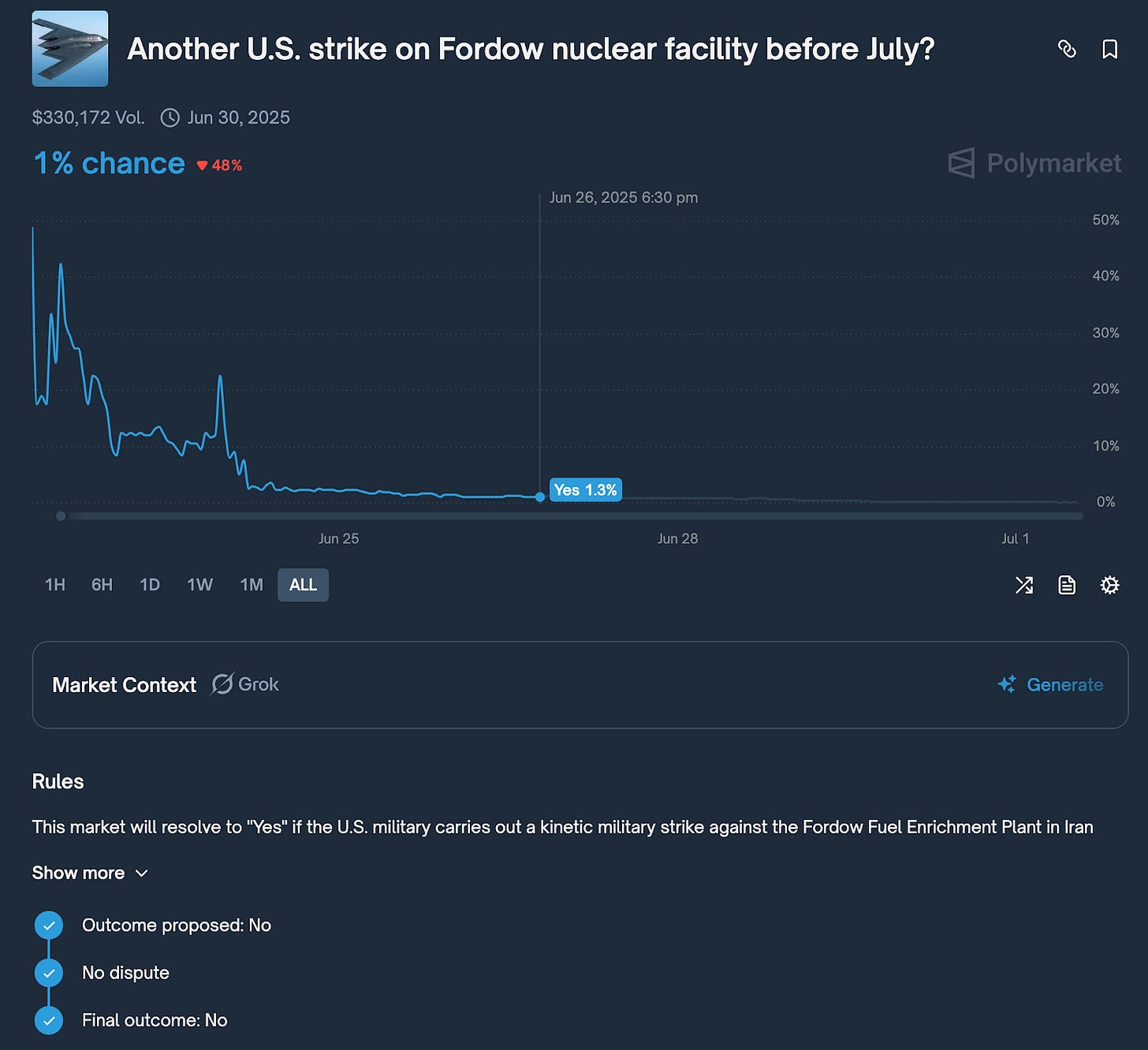 Prediction markets aren’t new. But until now, they were often legal grey zones or academic toys. Platforms like Polymarket and Kalshi changed that. One way to look at them is that they let people bet on outcomes. I like to think of it as pricing beliefs. I don’t think people at large study the events and carefully evaluate probabilities to bet on outcomes using scientific methods. There’s certainly an element of ‘winging it’. They are betting on what they believe will happen. Who will win the drivers’ and constructors’ championships in Formula 1 this year? Will the CPI in the US be below 2.5% in August? The price of a share reflects the crowd’s perceived probability. When new information emerges, the market updates in real-time. What Polymarket did was turn opinions into investable positions. It made belief understandable to software and tradable by anyone.